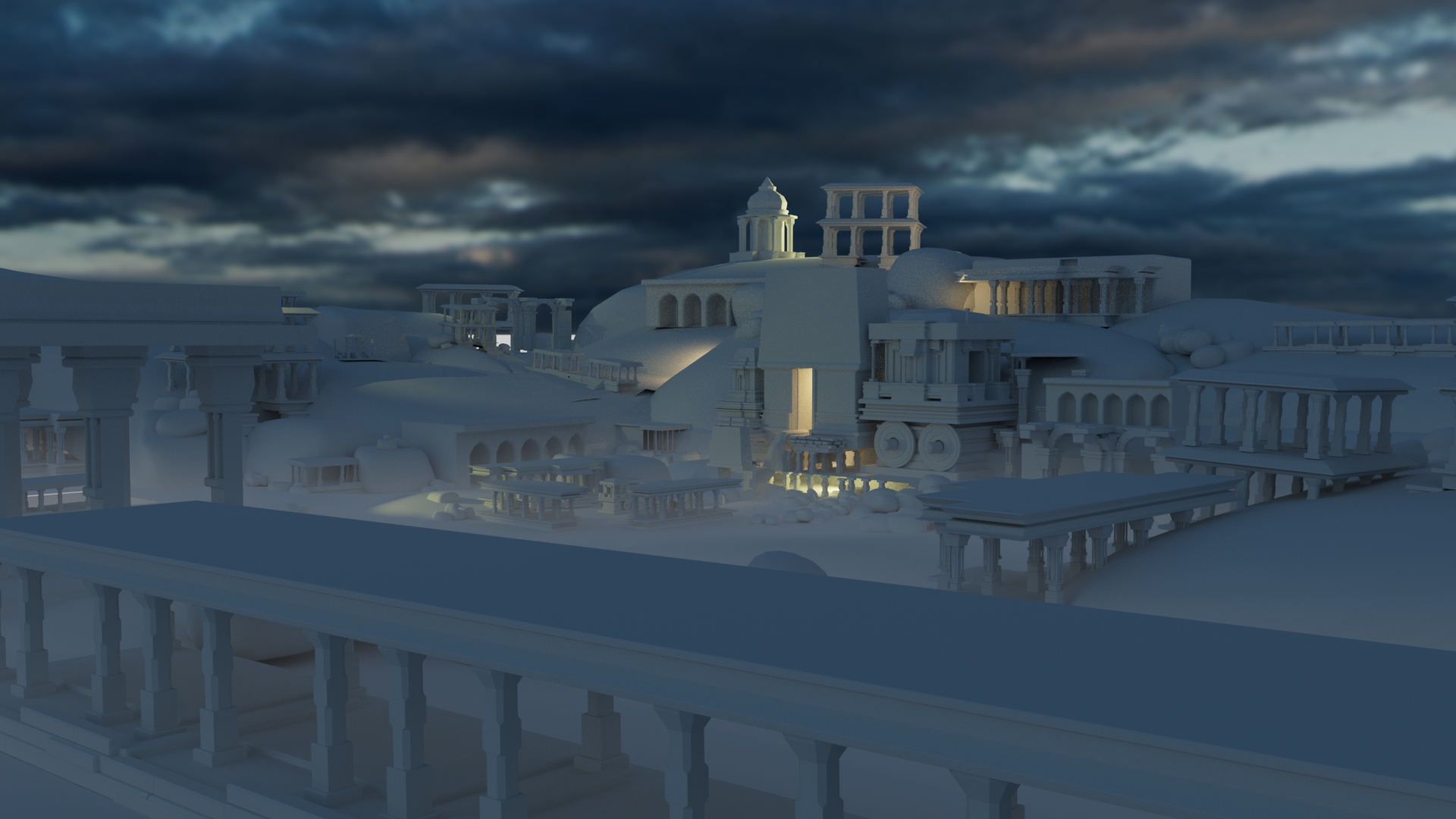 Architectural dome sculpting for temples, halls, and monuments.